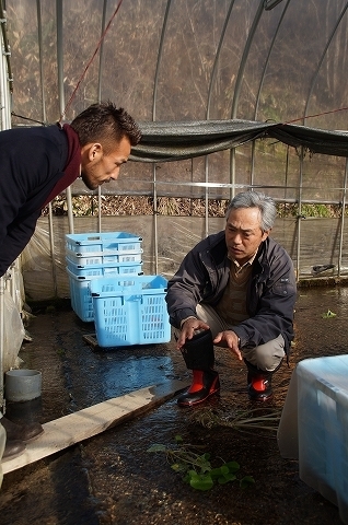 その後、国指定重要文化財である「南部曲がり家千葉家」や、「続き石」に「五百羅漢」、「福泉寺」から「姥捨て山」という具合に立て続けに立ち寄ってから、わさび農家の佐藤昭悦さんを訪問。昭和53年にわさび栽培を始められたという佐藤さん、寒い時はマイナス20℃くらいまで気温は下がるらしいのだけど、品質としては静岡、長野に並ぶという。