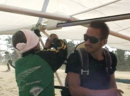 鳥取といえば砂丘。強風が吹く中ハンググライダーに挑戦するヒデ。