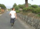 江戸時代からの町並みを今でも残す萩を自転車で散策するヒデ。