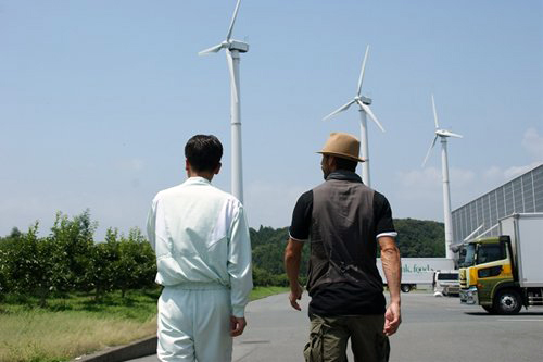 こちらの工場は安藤忠雄さんの設計。風力発電を設置して、その電力で工場排水を浄化して自然に近い状態の水に戻すなどの環境対策も施されている。