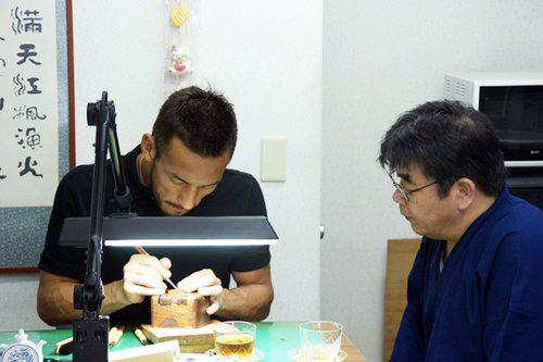 小見山さんはお父さんの影響を受けて印鑑職人を志し、今では全国でも数少ないと言われる、印刀以外の工具・機械を使用しない完全手彫りの印鑑職人として注目されている。