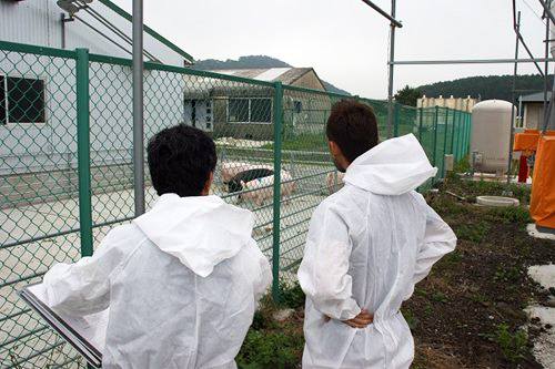 豚の生産者でありブリーダーである桑原」さんを訪ねに富士宮市へ移動。熱海とは打って変わって車窓からは山と草原の風景が。豚舎に到着して車を降りると外の空気はヒンヤリ…というか、肌寒い。少し太り気味のディレクターの大島はそうでもなさそうだ。