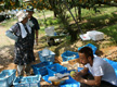 農園を営むおばあちゃん(70歳以上!)の方言がきつい。ヒデさんはよく笑って会話をしているが、内容をきちんと理解しているのか非常に心配だ。それにしてもとにかく元気で親切。農園内の梨のなる木の下にビニールシートを敷いて頂き、お茶を頂く。