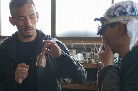 2日目、まずは金工の菅江浩峰さんを訪問。菅江さんは渡邊梵鐘の十代目。
