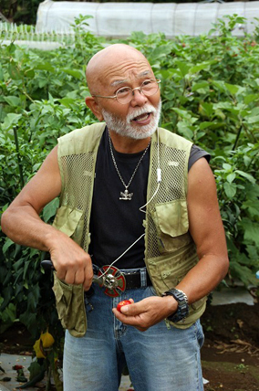 浅野さん、17才からこの場所で農業をやっているのだけど、その風貌はまさに、アメリカの延々と続く真っ直ぐな道路をハーレーにまたがって走っていそうな方。ただやはり、他の農業家同様に笑顔が優しさに溢れている人だった。