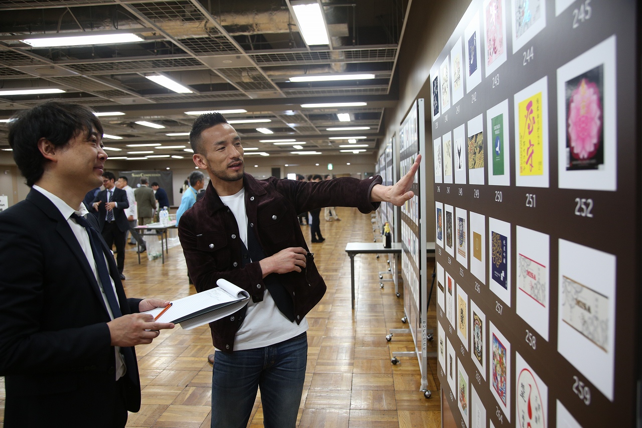 新しく設立された「ラベルデザイン部門」では285種類のラベルがパネルに張り出され、発案者である中田英寿も審査の様子を見守りました。ワインのような英語表記のラベルや、古くからある達筆な漢字を使用したもの等、色鮮やかなラベルデザインが並んでいました。審査には、日本を代表するクリエティブディレクターの水野学さんも審査委員長として参加しました。