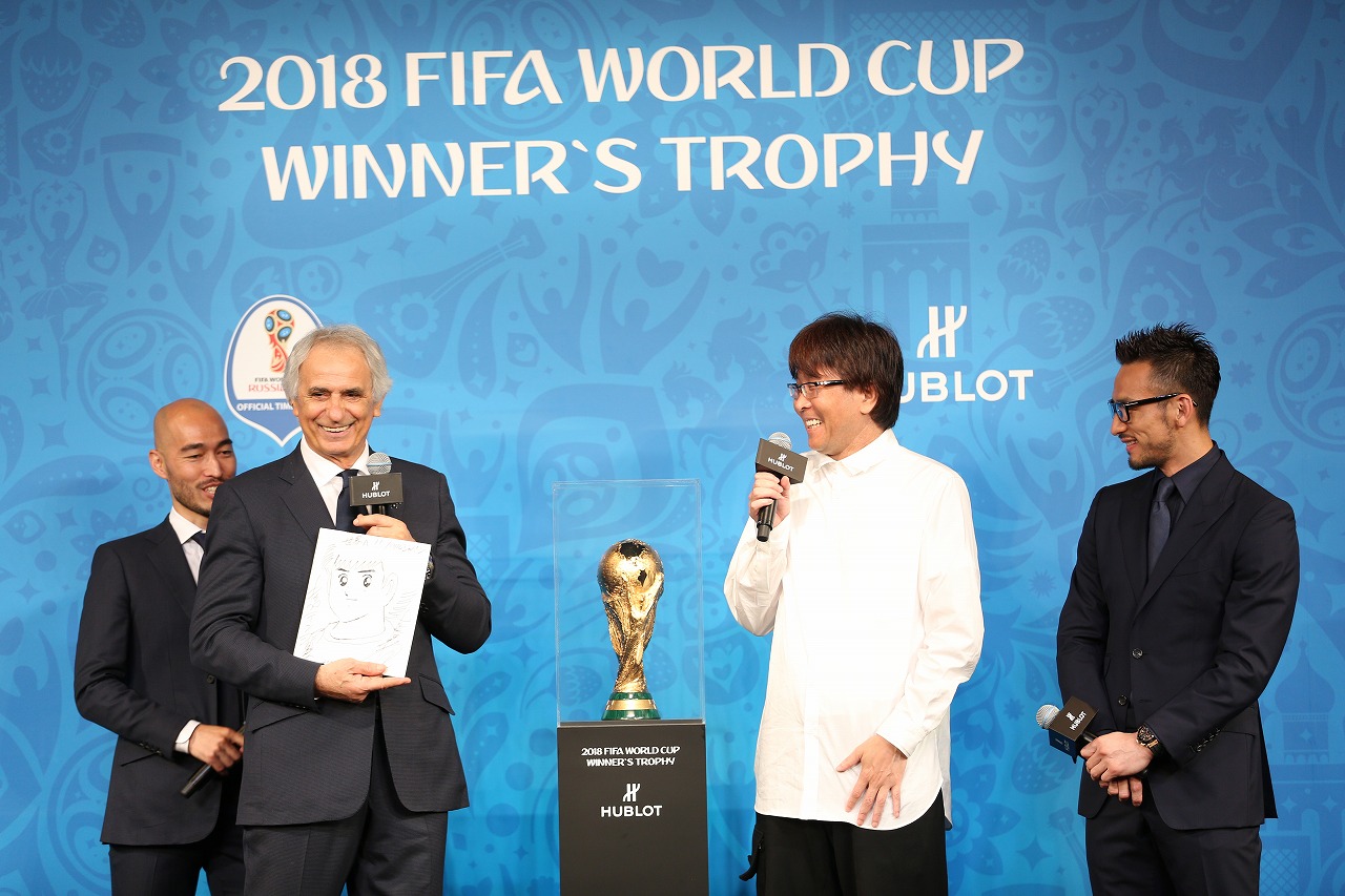 その前日にあたる5月24日(水)に、表参道ヒルズ スペース オーにて、「ウブロ ポップアップブティック表参道」期間限定オープン記念イベントを開催し、中田に加え、ウブロアンバサダーであるプロサッカー監督 ヴァイッド・ハリルホジッチ氏、にお越しいただき、ウブロがオフィシャルタイムキーパー、オフィシャルウォッチを務める2018 FIFA ワールドカップロシア大会(TM)にて、優勝国へ贈られるFIFA ワールドカップ優勝トロフィーを日本で初お披露目いたしました。