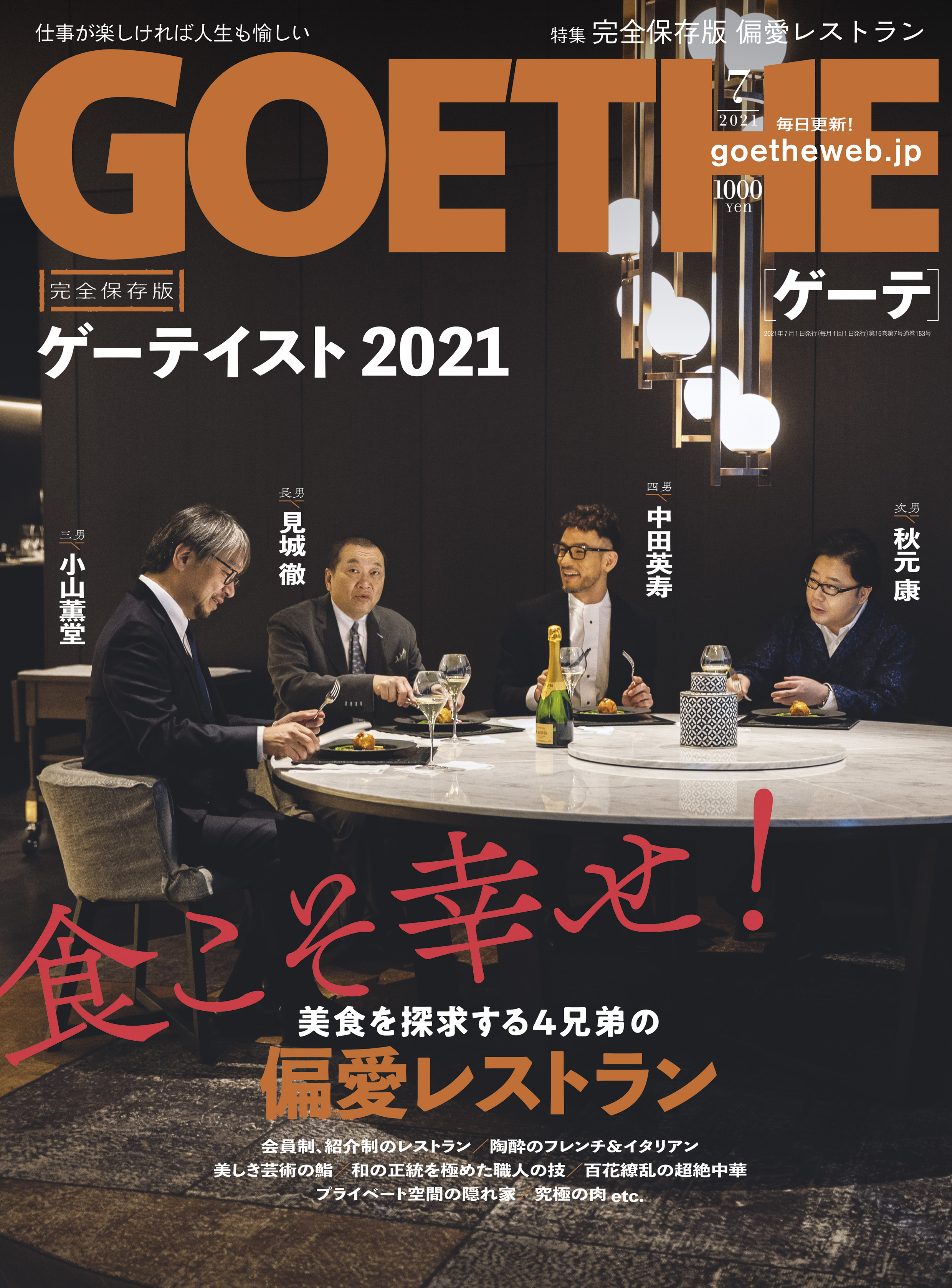 毎年恒例のゲーテレストラン大賞「ゲーテイスト」に今年も出演いたします。昨年に引き続き、美食を探求する秋元康氏、小山薫堂氏、見城徹氏とともにコロナ禍にあって元気をくれたレストランを厳選しています。