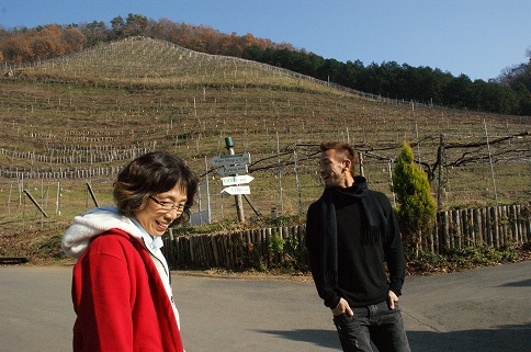 このぶどう畑の世話をしているのは、隣接する知的障害者支援施設である「こころみ学園」の生徒たち。この急斜面での作業の大変さは想像に難くないのだけど、この仕事は園生にとっても良い訓練になっているらしい。