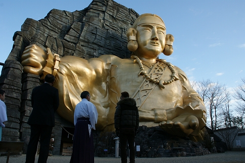5日目、まずは神命大神宮へ。こちら、前日に行った平和観音と同じではないけども、高さ25mというとてつもなく大きな神像がある。いつもに比べると時間は8時とそう早くもなかったのだけど、気温は−3℃。ただ、昨日の平和観音ほど寒さは感じなかった。もう、麻痺しているのかもしれない…。