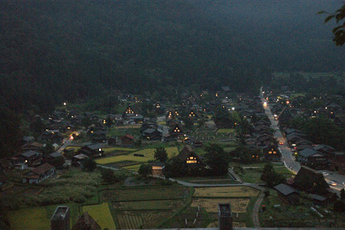 夕暮れ間近に到着した事もあり、急いで高台を目指す。もう半分日は暮れていて、集落には既にポツポツと灯がともっていたのだけど、そこから見た白川郷はまるで原寸大の村のおもちゃのような、それを現実のものとして受け入れるのに抵抗を感じてしまうほどに美しいものだった。