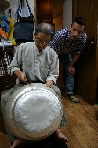その後カレーパンにありつく時間もなく、僕らは鍛金の人間国宝である奥山峰石さんを訪ねた。15才の時に山形から状況されたという奥山さん。応接室に作品が幾つか飾ってあるのだけど、目視だけで触れずとも、どれだけ手の掛かった作品かというのが伝わって来る。