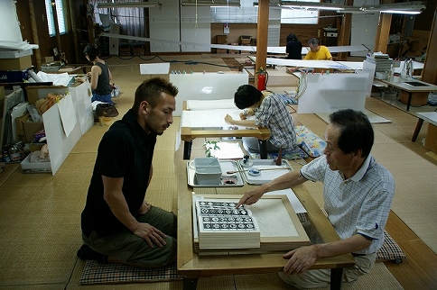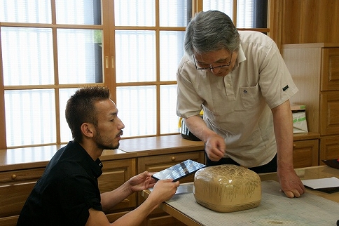 それから加賀を出て、金沢にある直源醤油に寄り、僕らはまた能登半島の先、輪島市へ。訪問先は沈金師の前史雄さん。この方もまた、人間国宝だ。ここ、2日目に来た朝市の通りから50mほど入った場所だった事もあり、