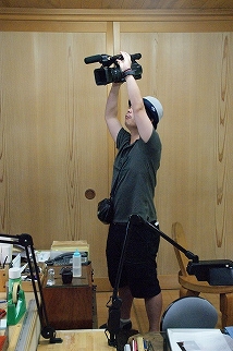 あの手この手で撮影する牧。表情からは冗談でやっているのか真剣なのかが見て取れない。