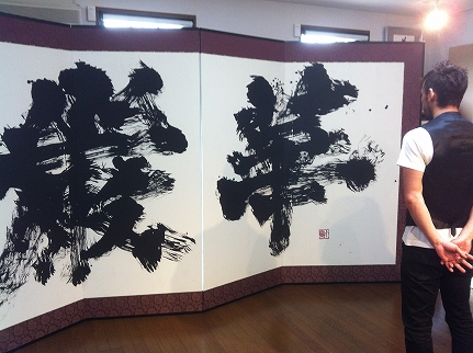翔子さんの作品を見せて頂く。東大寺で書かれたという大きな作品は、とても目の前にいる翔子さんが書いたとは思えなかったのだけど、じっくりと見てみると、彼女の「真っ直ぐさ」が溢れているようで、なるほどと思わされるものだった。
