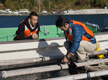 3日目。まずは早朝は4時半過ぎに宿を出発。僕らは東松島市大曲の港(皇室御献上の浜)へと向かった。この日は船で沖へと出て、震災以降、約2年ぶりの海苔の収穫へと同行させて頂くのだ。当たり前だけども…寒い。案内して頂いた太田さんの話によると、この日はまだそこまで寒い方ではないとの事。