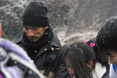ここでは梼原町や高知県の担当者の方から色々なお話を伺ったのだけど、雪の中に薄着で黙って話を聞くヒデさんが気になって仕方がない・・。声も体も震えていないのが不思議なくらいの寒さである。